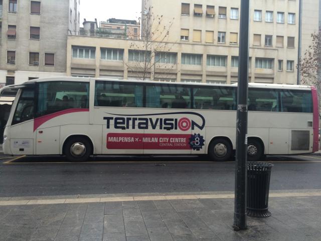 ミラノ中央駅から ミラノ・マルペンサ国際空港へ リムジンバスで移動